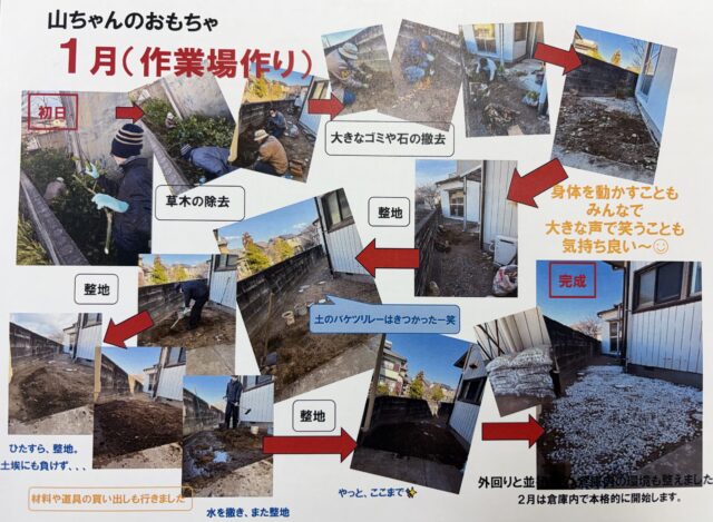 利用者さんと一緒に、寒い日も汗をかきながらの作業場づくりです。