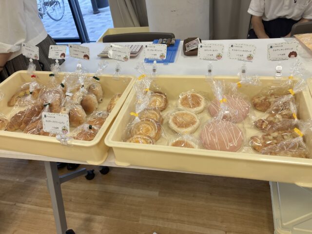 そのほかにも他の事業所で焼いたパンや、利用者さんの描いた絵をクリアファイルにして販売していたり、高校生の子たちがお茶を販売したり、、、本当に楽しい時間でした!!(ちょっとお客さんとして動き回っていた為、利用者さんに「ずっとどこかに出かけてるねぇ〜」と言われた事はここだけの秘密で!笑)
