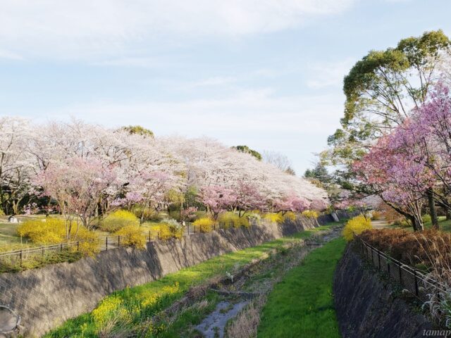 逆川の両岸2kmにわたって約300本が植えられ、春には美しい桜のトンネルが出来上がります。