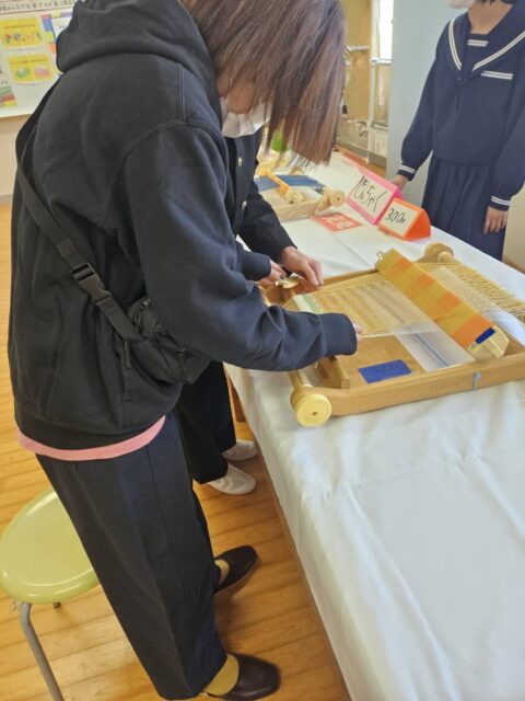 「11時から再販します」の声を聞き、11時まで他のクラスの作品を見させてもらったり、はた織り体験をさせてもらって、、